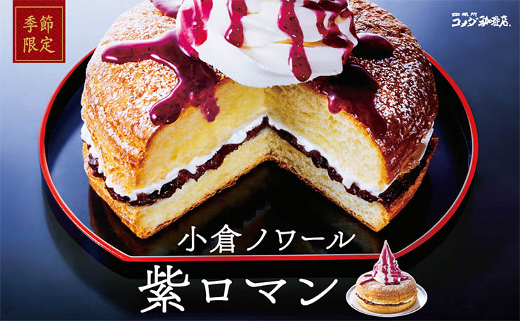 幼い頃を思い起こすような、甘酸っぱく、どこか懐かしい味わい。おひとりさまや食後のデザートにぴったりなミニサイズも用意。季節限定の「小倉ノワール 紫ロマン」は全国のコメダ珈琲店で発売。