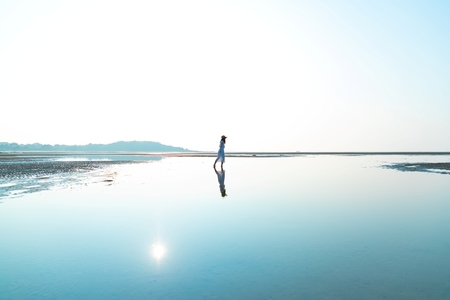 山口県宇部市にある「キワ・ラ・ビーチ」は、遠浅の穏やかな海で、干潮の時に出現する幅2.0km、奥行き700mの日本有数の広大な砂洲では、夏季に野鳥が餌をついばむ姿を見ながらの「のんびり引き潮ウォーク」を楽しむことができるほか、気象条件が整った際の干潮前後の潮溜まりでは、1年を通して鏡のように周囲が映り込む幻想的な風景を望むことができます。