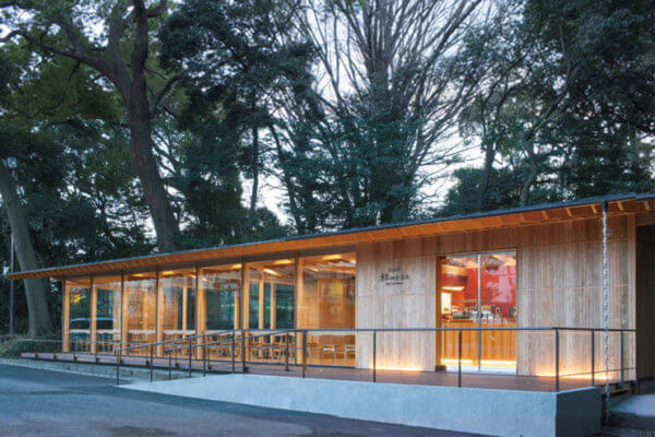 明治神宮の南参道入口に移設・新築された「杜のテラス」。