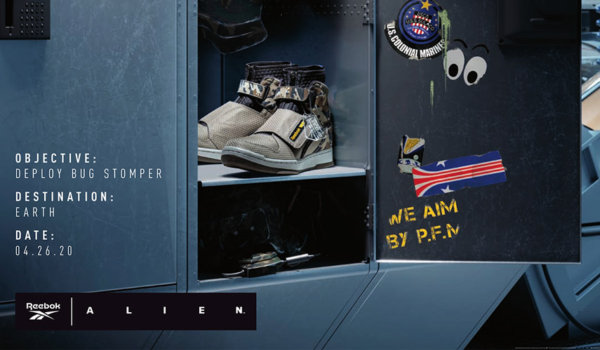 アッパーは、防弾繊維素材をイメージしてデザインされています。また、耐久性のあるゴム製のウィンドウボックス内には、リーボックのロゴにあるユニオンジャック(英国旗)を、劇中に登場する悪名高きWeyland Yutani(ウェイランド・ユタニ社)の「W」ロゴに置き換えています。さらに、ヒール部分のタグと足首のストラップ裏には、ドロップシップ「バグ スタンパー」のロゴに施された「We Endanger Species(我々はエイリアンを脅かす)」のフレーズが施されています。