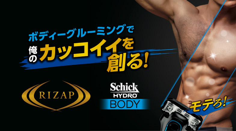 これまで 14 万人以上※2 ボディメイク実績を持つ RIZAP と一人ひとりのライフスタイルにあったトータルグルーミングを提案 するシックが「俺のカッコイイを創る!」というコンセプトに共鳴し、2 社の強力タッグが実現。あなたのボディグルーミングにフ ルコミットします。