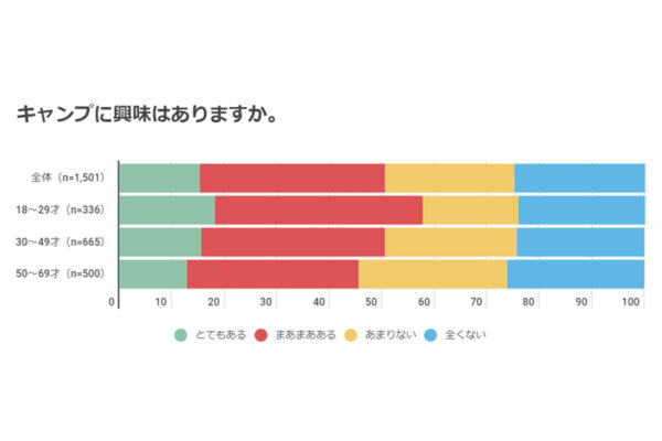 キャンプに興味がある人は全体の5割、10~20代の若者では6割