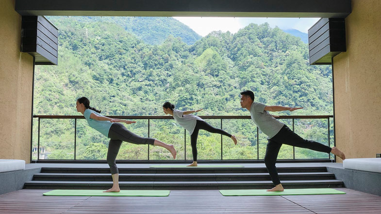 谷關の山の風景を見渡し、新鮮な空気とそよぐ風を感じながら、体幹を鍛える運動を行います。体幹と下半身の筋肉を使った一連の動きを、山々の香りを運ぶ清涼な空気を深く取り込みながら行います。深呼吸をしながら体の状態に意識を向けることで、自分自身の体についてより理解を深め、また体幹の強化にも役立てることができます。