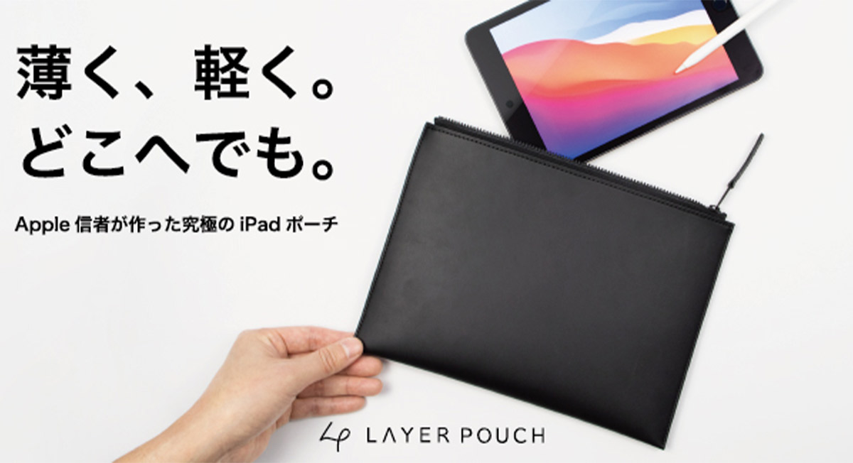 大阪に位置するサイバール株式会社運営のブランド「asoboze(アソボーゼ)」は、iPadの「薄さ」を活かして専用設計した「Layer Pouch(レイヤーポーチ)」の先行予約販売を2020年12月3日(木)12時より応援購入サイトMakuakeで開始しました。