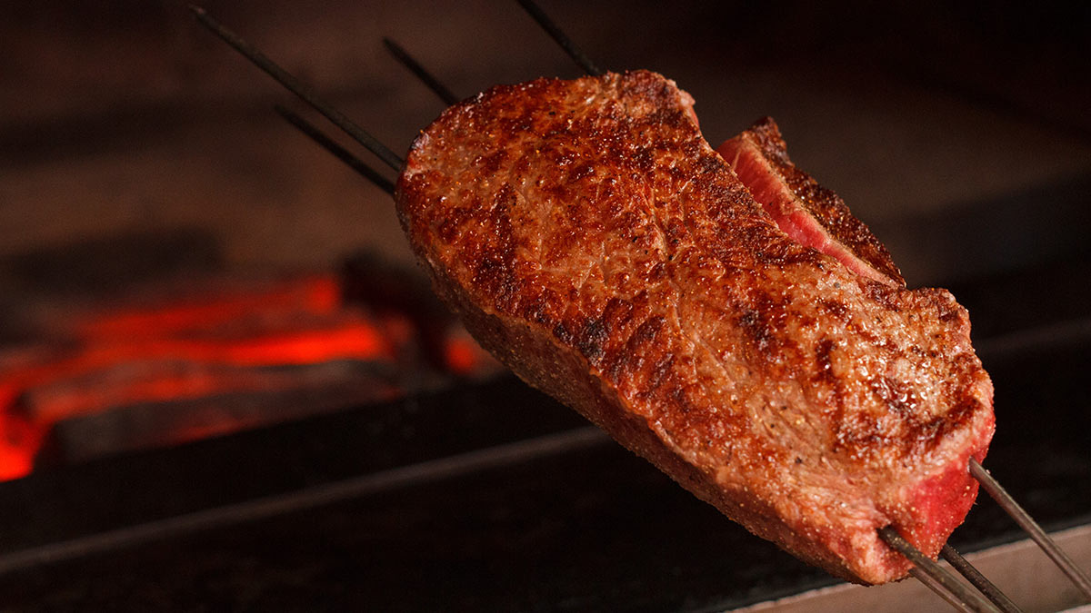 哥利歐のステーキは生産者が心血を注いで育て上げた最高品質かつ希少性の高い純血統未経産の但馬牛、長期肥育することにより牛の持つ脂の融点は低くなり、赤身の筋繊維のキメが細かくなることで濃密な旨味を醸し出します。そして創業時に据えられた特注の炉釜において、紀州備長炭で直火を熾し、熟練の職人技で丁寧にステーキを焼き上げます。高温の炭火で表面はクリスピーに、内部は炉釜特有の遠近赤外線効果で純血統未経産但馬牛の美味しさを最大限に引き出します。