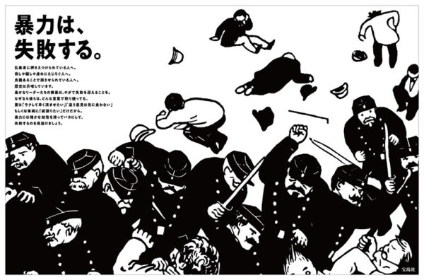 テーマは「暴力失敗」です。世界中で、すぐ近くで。乱暴な力に苦しめられている人びとがいます。そこにパンデミックが重なり、状況は悲観的かもしれません。けれども歴史を振り返ることで、見えてくる希望もある。世界がこの先どこへ向かうのか、この広告が、考えるきっかけになれば幸いです。