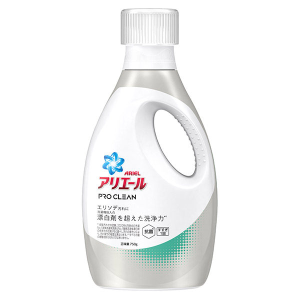 *1 アリエールプロクリーン ジェル: 皮脂汚れでの試験、2020年6月時点の市場No.1液体洗濯用洗剤とNo.1酸素系液体漂白剤の併用での比較(P&G調べ)。汚れの度合いにより、汚れ落ちの程度は異なります。