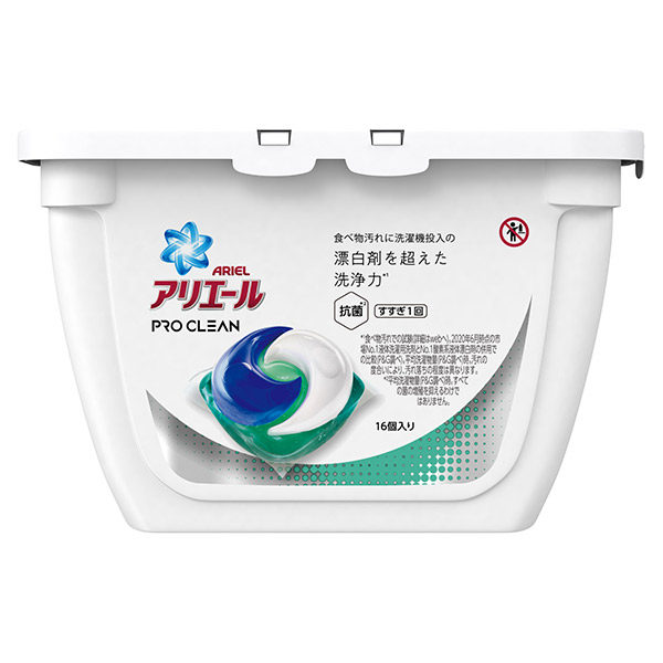 *2 アリエールプロクリーン ジェルボール: 食べ物汚れでの試験。2020年6月時点の市場No.1液体洗濯用洗剤とNo.1酸素系液体漂白剤の併用での比較(P&G調べ)。平均洗濯物量(P&G調べ)時。汚れの度合いにより、汚れ落ちの程度は異なります。