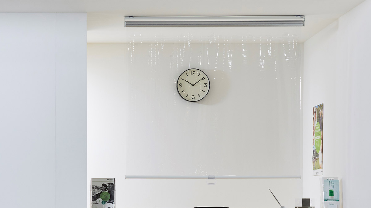 TR-V003は、抗ウイルス性能SIAA安全性基準適合品の基準をクリアしており、製品上の特定ウイルスの数を減少させる効果が期待できます。スクリーンには防炎性能もあり、病院やクリニックの受付、施設内のエリア間仕切り、店舗での対面接客など、幅広いシーンで使用できます。カウンターの掃除などで邪魔になる時も、ロールスクリーンタイプなら、クルッとしまえてとても便利です。
