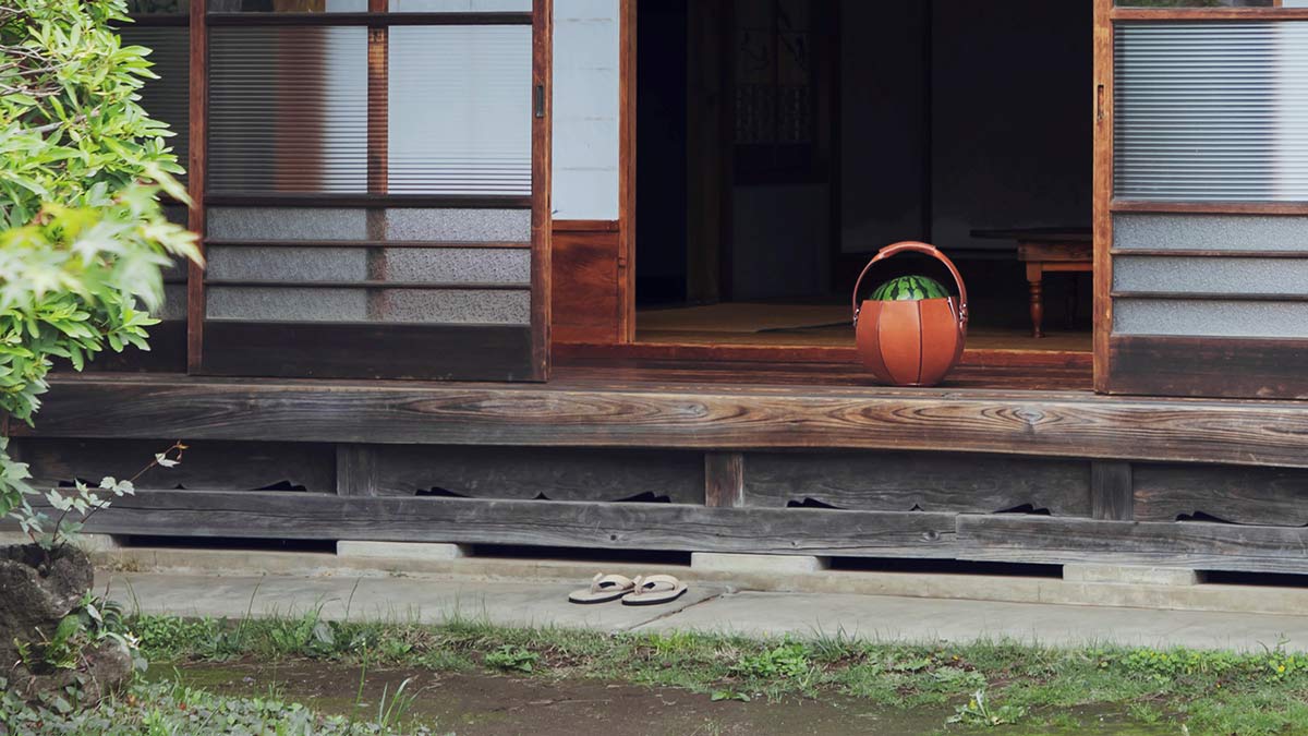 機能面も徹底的にこだわりました。口元の直径をスイカよりも小さくすることで、運ぶ際の安定性を向上させています。さらにスイカを落とさないよう、口元はボタン留めを8カ所付け、しっかりとホールド。持ち手は、牛革を巻くことで手になじみやすくしています。ずっしりと重い大きなスイカでも、片手で持ちやすく、手が痛くならない工夫です。外装の素材は、本体、持ち手ともにイタリア産の最高級品質の牛革「バケッタ・ミリングレザー」を採用。柔軟性と重いスイカを持ち運ぶための十分な丈夫さを併せ持った素材です。じんわりと光沢を帯びていく独特のエイジング(経年変化)を楽しめるのも魅力。使用を重ねるごとに色味と風合いが深まります。内装には、表面を平らに加工した牛革「スムースレザー」を採用。汚れ、傷が目立ちにくいのが特徴です。