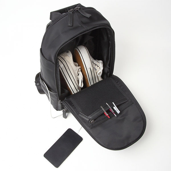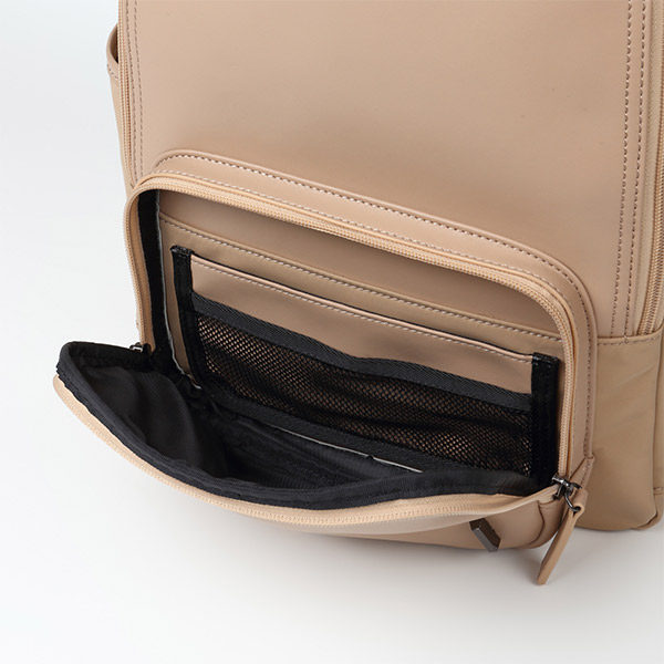 ミニマルなデザインを意識しながらも、14ものポケットが配置され、シンプルと多機能という相反する要素を1つのリュックに共存させました。また、背面開口部はノートパソコンとタブレットをそれぞれ収納できるポケットがあり、前面開口部と空間を分けることで、仕事とプライベートの切り替えがスムーズに。『カッチリ過ぎない、カジュアル過ぎない』をデザインコンセプトにシーンやスタイルを問わず使えるアイテムです。