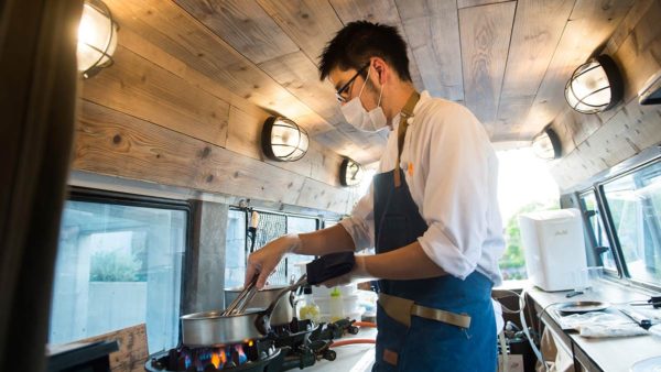 「シェフズキャラバン ヨコヅケ」は、レストラン並みの厨房設備を備えたキッチンカーでプロの料理人が自宅までやってきます。車内で調理された出来立ての料理をリビングや庭など好きな場所で食べることができるのが特徴です。