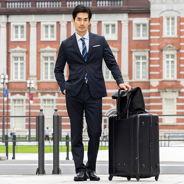 独自開発の新素材「ultimex/アルティメックス」を使用し、高機能(ストレッチ性、速乾・撥水、多収納、水洗い可、イージーケア)と、フォーマル要素を兼ね備え、時間・場所問わず着用できます。