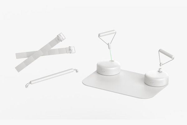 ユーザーが自宅で使用するエクササイズ専用デバイスも、walkeyのために独自で開発されたものです。握りやすいハンドル、ワンタッチで着脱可能なジョイント、押しやすいボタンなど、ユーザーがひとりでも迷わずに使うことのできる設計になっています。 角がなく薄い形状など、誤って落下させたり衝突してしまっても、ケガをしにくい安全なデザイン。 インテリアになじむ外観は、部屋に出しっぱなしでも邪魔にならないため、運動の継続を支援します。