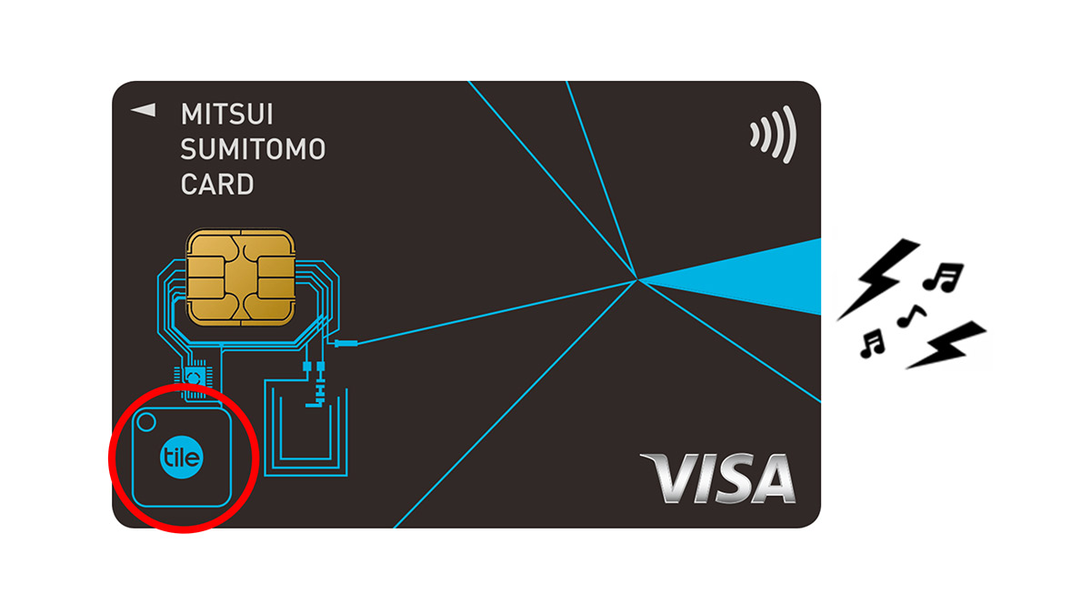 「三井住友カード Tile」は、従来のクレジットカードと同じサイズで、ICチップの搭載やタッチ決済に対応。探し物トラッカー「Tile」の機能により、カードを紛失した場合でも、スマートフォンとカードの接続が切れた場所をアプリで確認することができます。