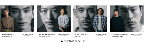 資生堂ジャパンが、「SHISEIDO」のプレステージメンズライン「SHISEIDO MEN」の日本における2022春夏コミュニケーションに、パフォーマーの佐野玲於、俳優の奥野瑛太、ラッパーのIO、彫刻家のTAKU OBATAを起用。2022年1月24日(月)よりSHISEIDO MEN公式サイトを皮切りに、デジタル広告、JR東日本・新宿駅南口の大判ポスター、東京メトロ・表参道駅の大判ポスターおよびデジタルサイネージにて順次公開していきます。