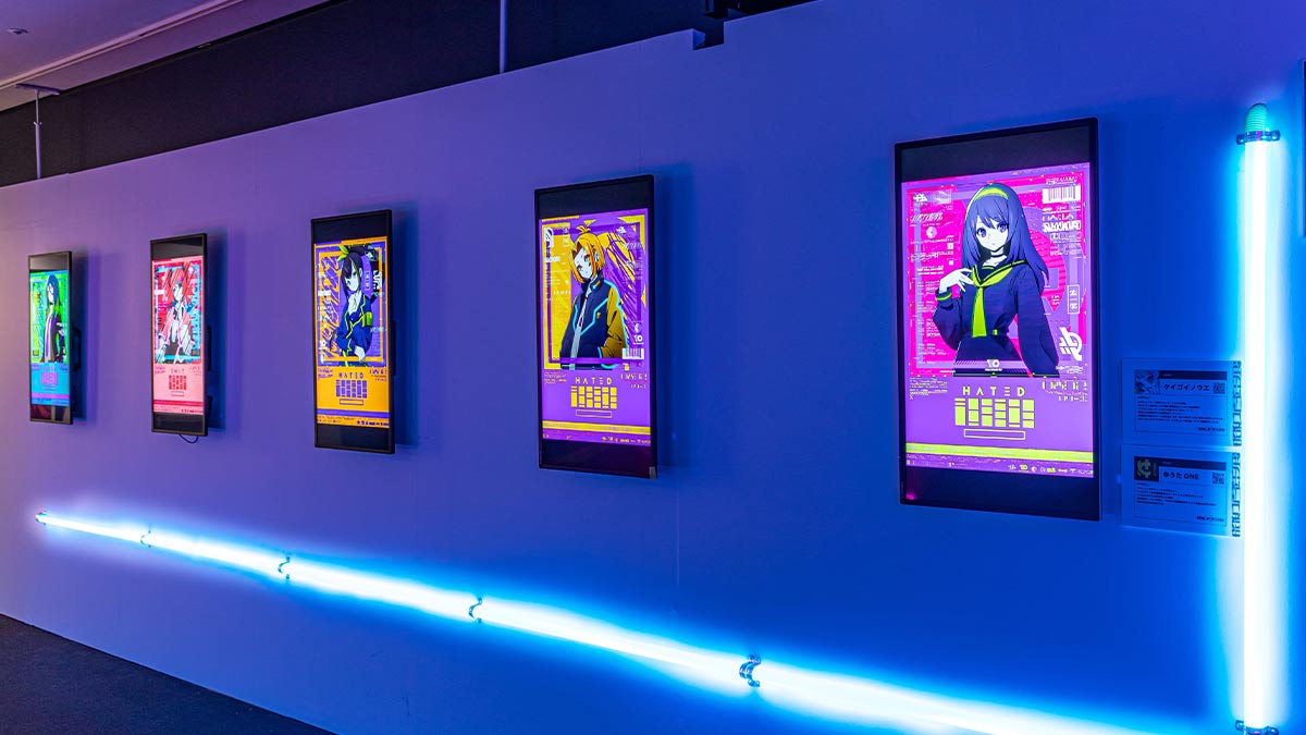 今回は東京会場で作品を展示した18名のアーティストに加え、新たに3名のアーティストの作品が登場。30台以上のモニターで、100点を超える作品を展示するほか、電話BOX型フォトブース「CONNECT TO SHOWA100」や近未来サイバーパンクアーティスト「CHA2」による立体オブジェクトエリアも登場します。また、会場に併設する物販コーナーでは、参加アーティストの作品がデザインされたTシャツやパーカーなど、多数のアイテムの販売も実施されます。