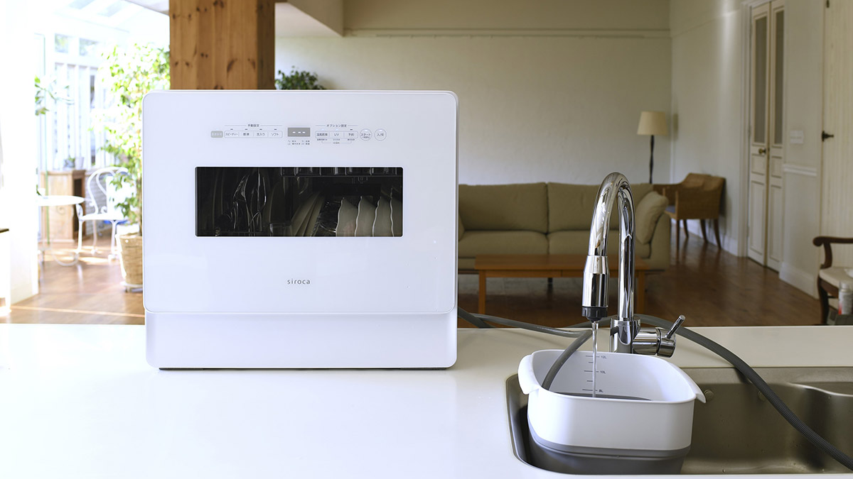 シロカの食器洗い乾燥機は、「水道工事が面倒」「キッチンに置くスペースがない」といったお悩みを解決するタンク式を採用し、2019年9月の発売以降、水道工事不要でどこでも使える点で高評価を得ています。