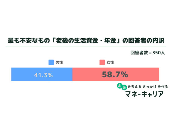 そして「老後の生活資金・年金」と回答した人のうち、約6割(58.6%)が女性であり、男性に比べ女性の方が老後の生活について不安を感じていることがわかりました。