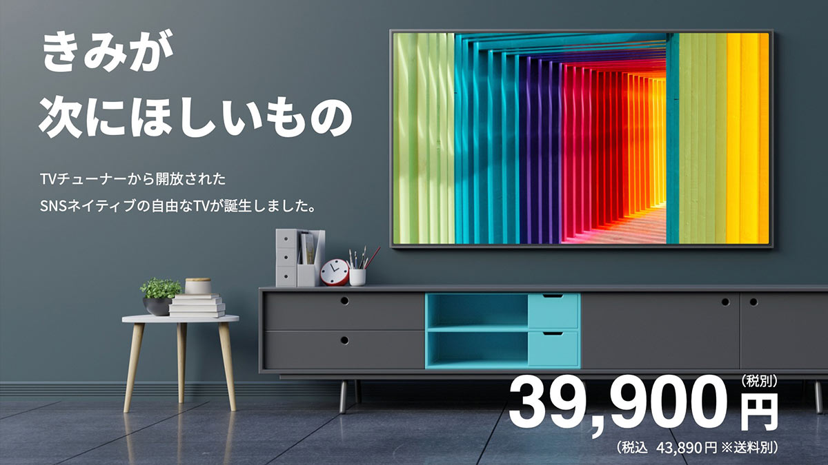 SmartTV,Inc( https://smarttv.jp )から、TVer、U-NEXT、Netflix、Amazon Prime Video、YouTube、ABEMAなどのネット配信動画の視聴に特化した、チューナーレスのAndroid TV・Chromecast内蔵の43V型4Kスマートテレビを2022年7月15日に販売します。