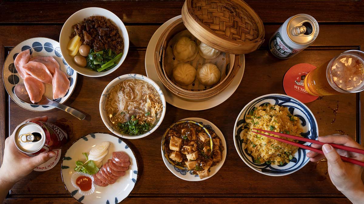点心ではWUMEIロゴのモチーフとなった台湾の国花「梅」にちなんだ、ほんのりピンクな「ウーメイ水餃子」や台湾点心の代表「小籠包」を用意。ドリンクは台湾から輸入したビールやソフトドリンクが各種取り揃えられています。また、食器は台湾老舗飲食店企業欣葉(シンイエ)社が陶磁器の街、鶯歌(イングー)で買い付けた台湾の今を感じられる彩り豊かなものを使用するなど、コロナ禍で台湾へ旅行に行けない中、台湾気分も味わえるお店としています。