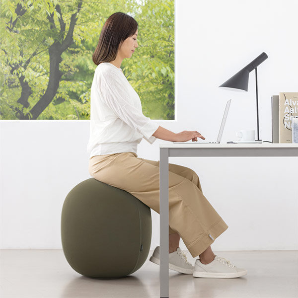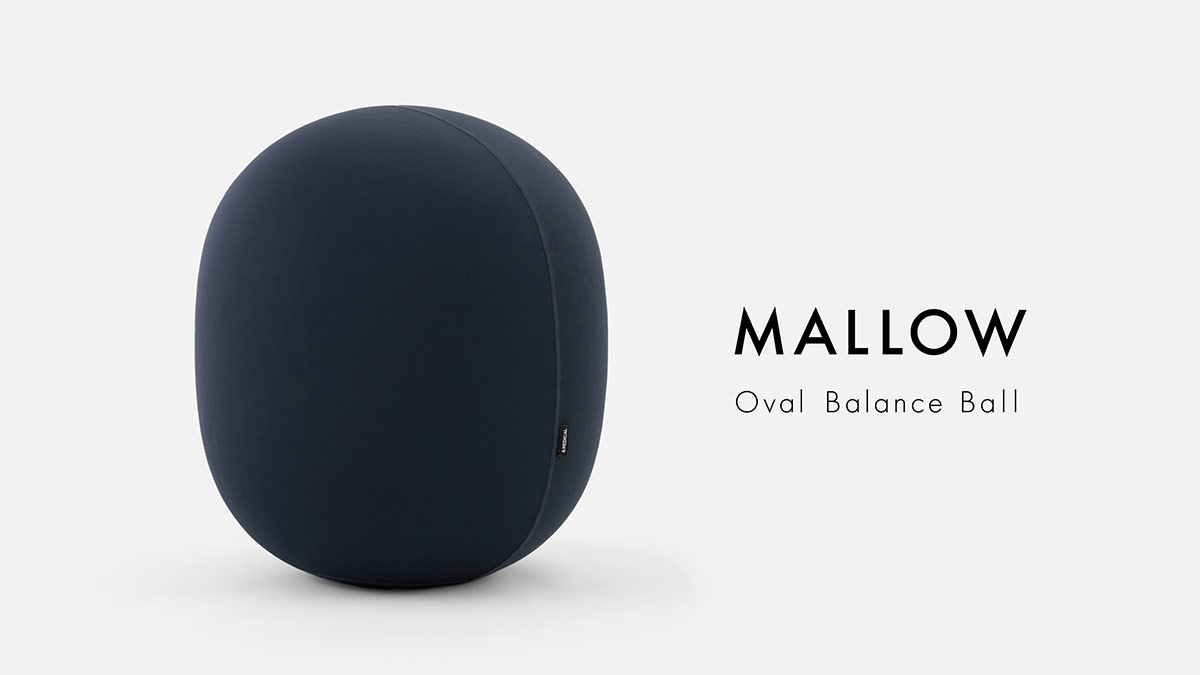 『MALLOW』は、これまでにない新しいオーバルフォルムのバランスボールです。一般的な球体のバランスボールと比べて奥行きが狭く、スマートな形状のため場所をとりません。重心が下にくるように設計し、自立する安定感をもたせることで、身体の動きにあわせてフレキシブルに座り姿勢をサポートします。エアクッション構造の弾むような座り心地を保持し、身体がバランスをとろうとすることで自然と体幹トレーニングができるため、運動不足になりがちなデスクワーク中のチェアとしてもおすすめです。