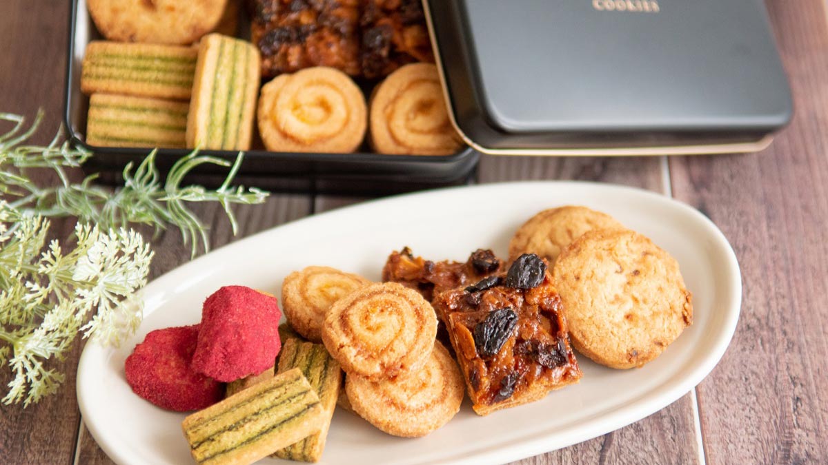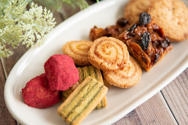 リッチな味わいのクッキー生地に、オレンジ・甜菜糖・レモン果汁のみで作ったジャムを合わせ、細かく刻んだオレンジの皮をアクセントに加えたオレンジクッキーと、抹茶の風味を生かすために3層の縞模様に仕上げた甘さ控えめな抹茶クッキー。さらに人気のフロランタンとフルーツ、新商品のオレンジと抹茶に詰合だけの限定クッキー・ラズベリーが入った5種類の詰合せは、大切な方への贈り物にピッタリです。