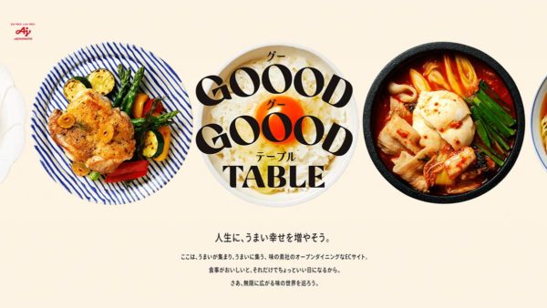 味の素が届ける新サイト「GOOOD GOOOD TABLE(グーグーテーブル)」は、味の素のこだわりの逸品を開発秘話などの背景やストーリーと共に楽しめる要素だけではなく、ユーザーの食に対する好奇心を満たし、従来の食卓をグレードアップするようなレシピやフードペアリングなどの情報を届けることで、新しいおいしさとの出会いを継続的にサポートします。また、既存通販サイト「味の素ダイレクト㈱オンラインショップ」と基盤を連携し、共通ID「AJINOMOTO ID」でのシングルサインオン(※)を可能にしました。
