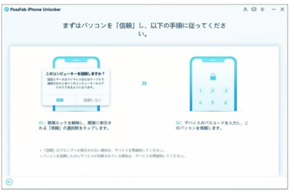 Step2:iPadをパソコンに接続します。接続中のパソコンを「信頼」します。