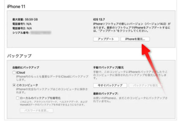 Step2:「概要」を開き、「iPhoneを復元」をクリックします。
