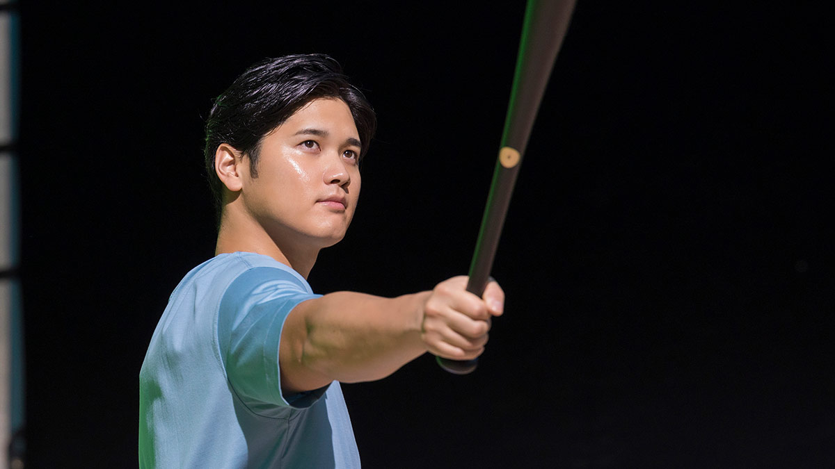 水色Tシャツに白パンツを身に纏った爽やかな雰囲気でスタジオ入りした大谷選手。バットを手にしてホームラン予告のパフォーマンスや、バットでスパイクの土を落とす仕草など、さすがの慣れた手つきでスムーズに撮影が進みました。セット転換の合間には、軽く素振りをしたり、スタッフと談笑したりリラックスした様子。