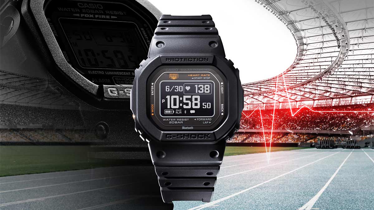 “G-SHOCK”は、“落としても壊れないタフな時計を作りたい”という開発思想のもと1983年に誕生しました。以来、耐衝撃性能をベースに、機能や構造、デザインの進化を継続。なかでも初号機「DW-5000C」の角型フォルムは、“G-SHOCK”の代表的なフォルムとして現在まで脈々と引き継がれており、「5600」のシリーズ名でその時代の最先端機能を採り入れて進化を続けています。新製品の『DW-H5600』は、“G-SHOCK”初号機の角型フォルムを受け継ぎながら、さらなる機能進化として、スポーツシーンで便利な心拍計測機能を搭載した耐衝撃ウオッチです。