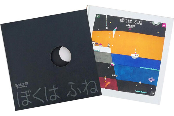 今回刊行する新作『ぼくは ふね』は、嵐で地面に乗り上げてしまったちいさなふねが、他のふねに言葉をかけられながら、山や畑、街の中を進んでいくお話です。まわりと比べる必要も、まわりと同じ必要もないと、静かに人々の背中を押してくれるような、子どもから大人まで誰もが共感できる一冊です。集大成にふさわしい特別な装丁は、五味さん自身によるもの。黒いスリーブから本を取りだすと、ちいさな船が海へ出航するように見える造本になっています。