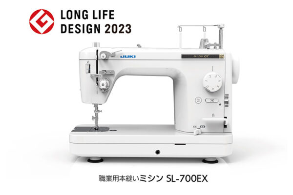 昨年、JUKIの家庭用ミシンの一つである職業用本縫いミシン「SL-700EX」が、グッドデザイン・ロングライフデザイン賞を受賞しました。104件の審査対象の中から6件が受賞し、そのうちの1件にJUKIの職業用本縫いミシン(以下、職業用ミシン)「SL-700EX」が輝きました。