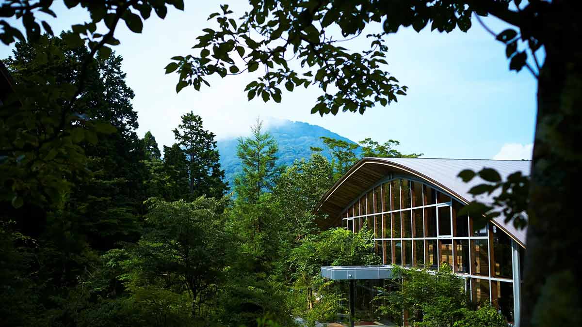 före(フォーレ)は全3棟37室からなるホテル。緑に囲まれた山の中に佇み、戸外へとつながる窓からやさしい光が差し込むモダンな空間となっています。「森の中で花や鳥や木々に囲まれたリトリート」をコンセプトに、日々の喧騒から離れ、テレビや時計のない客室でゆったりとした時間が過ごせます。