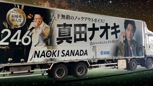 新曲発売を記念し作成された真田ナオキのオリジナルトラックが、実際に国道246号線を走行中。『#真田ナオキトラックを探せ』SNSキャンペーンを開催中です。トラックの写真を撮ってX(旧Twitter)にて、2つのハッシュタグ「#246にーよんろく」「#真田ナオキトラックを探せ」をつけて画像を投稿し、テイチク公式アカウント(@teichikuenka)をフォローすると、抽選で10名に真田ナオキ「246」トラックステッカーがプレゼントされます。ぜひチェックしてみてください。
