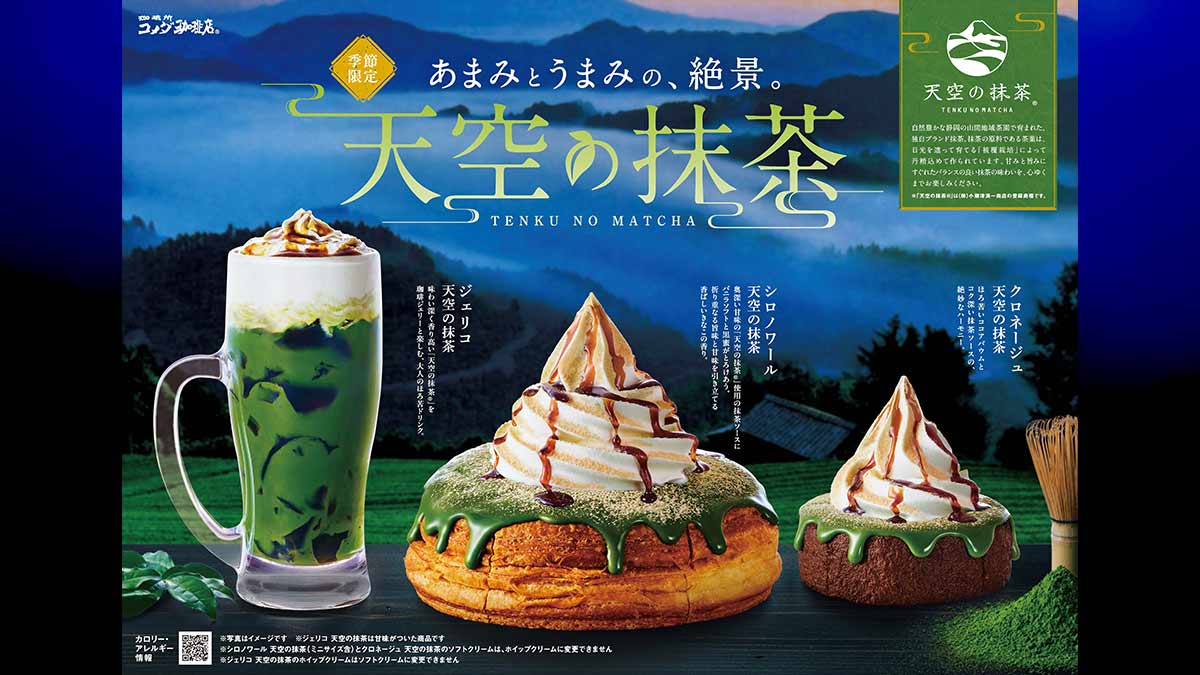 コメダから、静岡県の山間地域で栽培される「天空の抹茶(R)」を使用した3種の商品を、2024年6月5日(水)より、全国のコメダ珈琲店にて季節限定で販売されます。