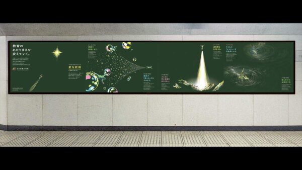 6月24日(月)から長野・軽井沢駅、6月28日(金)から東京・霞が関駅で交通広告をそれぞれ1週間掲出します。学園が所在する信州の玄関口として首都圏から約1時間でアクセスできる軽井沢駅、また、教育をはじめ我が国の様々な基準となる”ものさし”をつくっている省庁が集まる霞が関駅に掲出します。霞が関駅は、学園が実践する「マルチものさし」の考え方が、日本の教育の新たな選択肢として拡がっていくことを願って、現在の「教育のあたりまえ」に対する一石を投じる狙いをこめてこの場所を選んでいます。