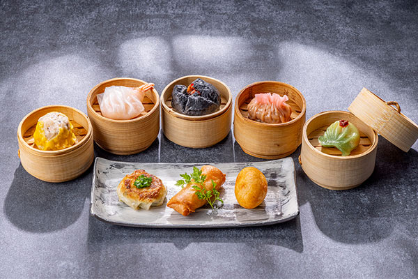 熱々の状態で席まで届けてくれるプレミアム点心8種類はお好きな物をお好きなだけ注文できるシステム。「トリュフ香るホタテ貝、海老入り海鮮焼売」や海老一尾を贅沢に包んだ「極品海老蒸し餃子」、「五目の揚げ団子」など、ワンランク上の点心を心行くまで味わえます。