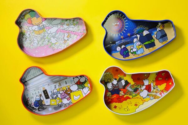 2024年で豊島屋が創業130年を迎えることを記念し、缶はそれぞれ鳩サブレーカラー、青、白、赤の4色。鳩サブレーを詰め込んで持ち運ぶことができるので、いつでもどこでも鳩サブレーを味わうことができます。しかもこの缶は、蓋を開けると、内側に春夏秋冬を過ごす鳩たちのかわいいイラストが描かれています。