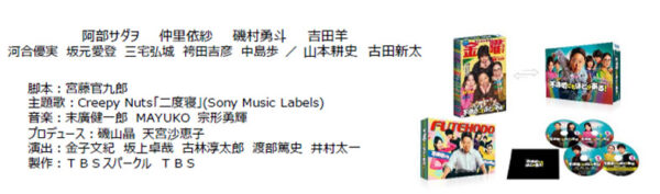 また特典映像として、尺の都合で泣く泣く落とした「幻の未公開カット集!」や、制作発表会見、クランクアップ集など合計3時間以上が収録されています。音声特典として、阿部サダヲ・磯村勇斗・三宅弘城が第10話を見ながら、制作秘話を語るオーディオコメンタリー、さらに封入特典として磯山P&金子DによるSPインタビュー対談を収めた特製ブックレットを封入となっています。