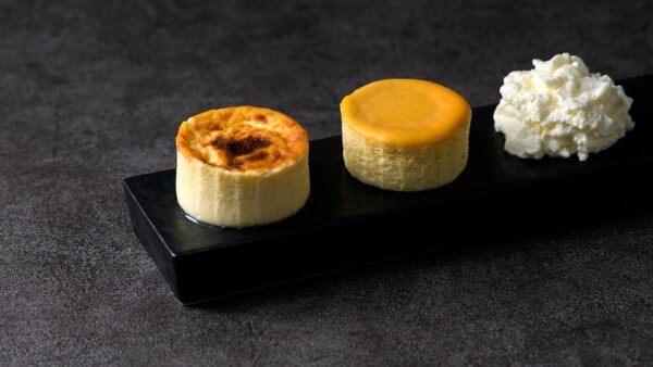 北海道箱根牧場のフロマージュブランとデンマーク産のクリームチーズをたっぷりと使用し、高温短時間で焼き上げることにより、表面に軽く焦げ目をつけました。そのため、中はしっとりとクリーミーな食感で、濃厚なミルクの風味が味わえ、かつ、バスクチーズケーキ独特の香ばしさプラス。仕上げに津軽海峡の塩でアクセントをつけました。