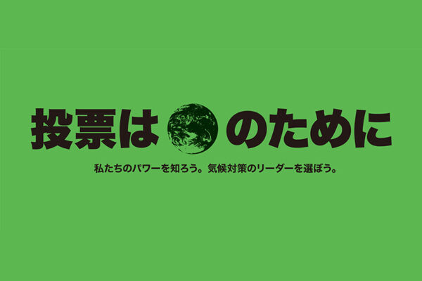 「投票は🌎のために。私たちのパワーを知ろう。気候対策のリーダーを選ぼう。」