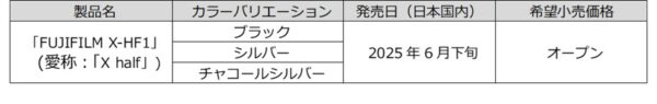 富士フイルムが、独自の色再現技術による卓越した画質と小型軽量を実現する「Xシリーズ」の最新モデルとして、240gの軽量ボディでフィルムライクな写真表現を楽しめるコンパクトデジタルカメラ「X half(製品名:FUJIFILM X-HF1、以下 X half)」を2025年6月下旬より発売します。