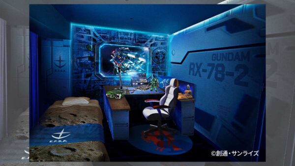 このコラボルームでは、名機「MG 1/100 RX-78-2 ガンダム Ver.3.0」をモチーフに、宿泊者が本格的にガンプラ制作を楽しめる空間を演出。壁一面の特別デザイン、コックピット型の専用デスク、ガンプラ展示コーナーなど、細部にまでこだわった内装がファン心をくすぐる。また、工具類も一式完備されており、滞在中は好きなだけ制作に没頭できる環境が整っている。