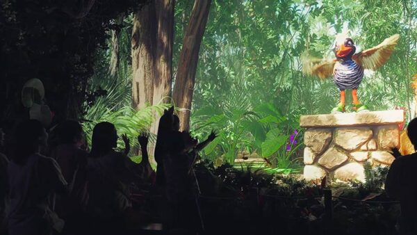 オープン初日には、多くのゲストが詰めかけ、ゲートオープンを心待ちにしていました。「一緒に声を合わせて、新たな冒険の幕を開けましょう!」というMCの合図でカウントダウンが始まり、全員が「ジャングリア!」と叫ぶと同時に、「ジャングリア ツリー」周辺が幻想的な霧に包まれます。霧が晴れると、41名のJUNGLIA Navigator(ジャングリア ナビゲーター/従業員)が勢ぞろいで登場し、祝祭ムードが一気に高まりました。拍手と歓声があふれる中、まさに冒険の幕が盛大に切って落とされました。