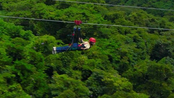 約19mの高さから、目の前に広がるやんばるの大自然に向かって両手を広げて生身でダイブ!鳥のように沖縄の空を高速で駆け抜ける。約280mの滑空はまさに“空を飛ぶ”体験。強烈な爽快感に包まれます。