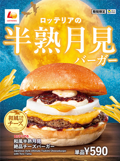 秋の風物詩として定着しつつある“月見バーガー商戦”に、今年もロッテリアが参戦。「半熟月見バーガーフェア」と題し、月を模した半熟風たまごを主役にした期間限定バーガーが登場しています。