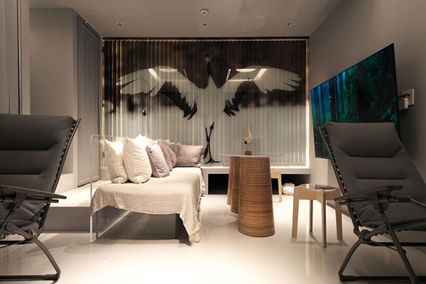 この「禅サウナ」は、自然の静寂と都市の洗練を両立させる“Art for Sauna”と“Nature for Sauna”という2つの方向性から構築。館内には現代アートや古美術作品が点在し、墨色を基調とした空間と調和。都市にいながら、深いスピリチュアル体験が可能です。