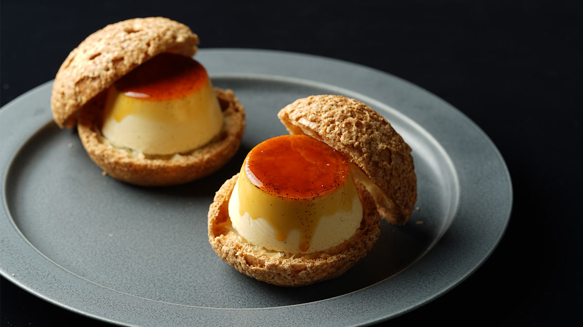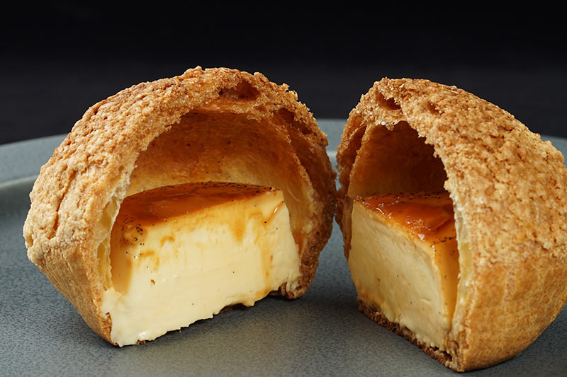 毎月1日のオンライン販売でわずか18分で完売する「グルテンフリープリンシュー」。小麦粉を一切使わず、米粉で仕上げたサクサク軽やかなシュー生地に、濃厚さが通常の約8倍もある特製プリンを詰め込んだ、唯一無二のスイーツです。さらに、全12種類のソースの中から、プリン1つにつきお好みで2種類を選べる仕組みで、「素材そのままの味 → ソースによる味の変化」という、味わいのストーリーを楽しめるのも特徴です。